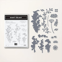 My choose two options were "White & Blending". I have used the Basic White cardstock as my white element and the Artistic Mix Masks to blend a layer of Soft Seafoam & Pear Pizzazz inks using the blending brushes and added a pretty floral from the Dainty Flower bundle coloured with Mango Melody & Old Olive Stampin Blends and some Glitter Enamel Dots & Linen Thread bow to finish.